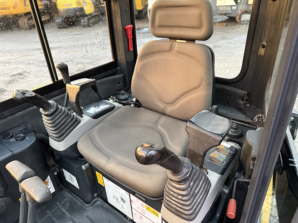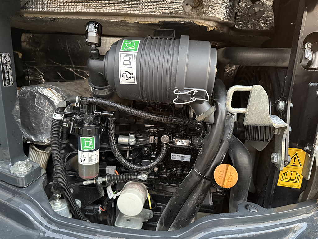 Komatsu PC26 MR-3 z 2019 roku to maszyna w doskonałym stanie wizualnym i technicznym, zachowana w oryginalnym lakierze. Przy przebiegu wynoszącym 1880 motogodzin, jednostka napędzana jest niezawodnym silnikiem Yanmar o mocy 15.7 kW (21.3 KM). Maszyna o wadze 2800 kg porusza się na gąsienicach, których stan ocenia się na 80%. Koparka jest niezwykle funkcjonalna dzięki zastosowaniu szybkozłącza Lehnhoff MS03 oraz bogatego zestawu osprzętu, w skład którego wchodzi hydrauliczna łyżka skarpowa (120 cm) oraz dwie łyżki do kopania (30 cm i 60 cm). Sprzęt posiada pełne wyjście hydrauliczne (m.in. pod młot) oraz oferuje dwa tryby jazdy – „żółw” i „zając” – co znacząco podnosi komfort i wydajność pracy w zróżnicowanym terenie.