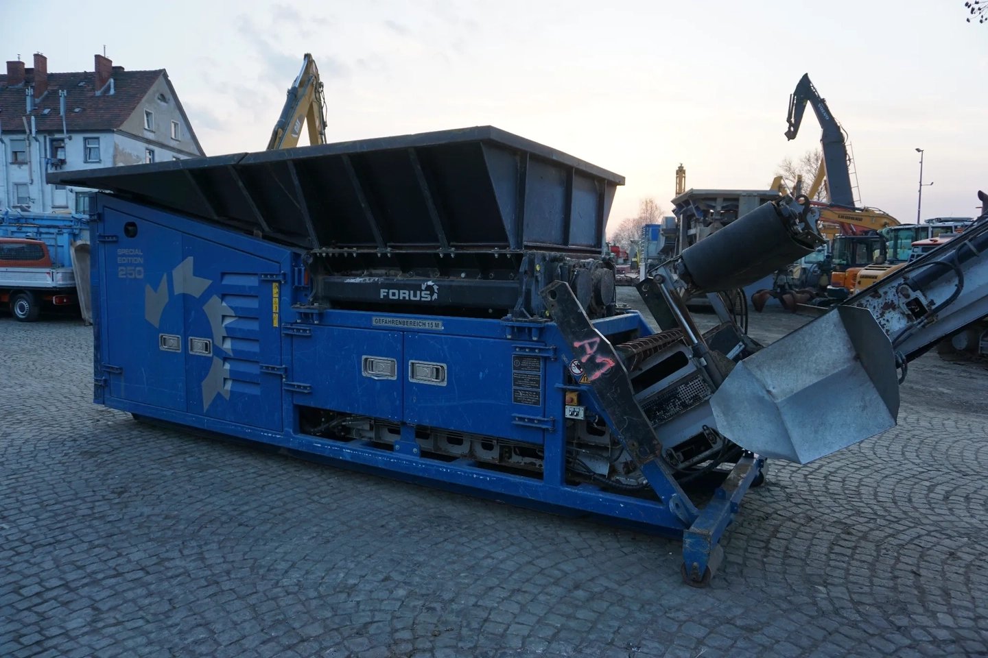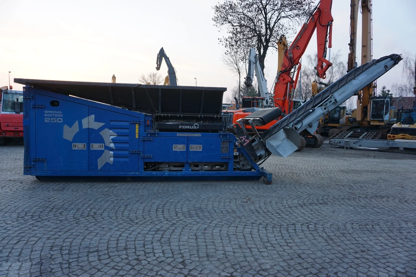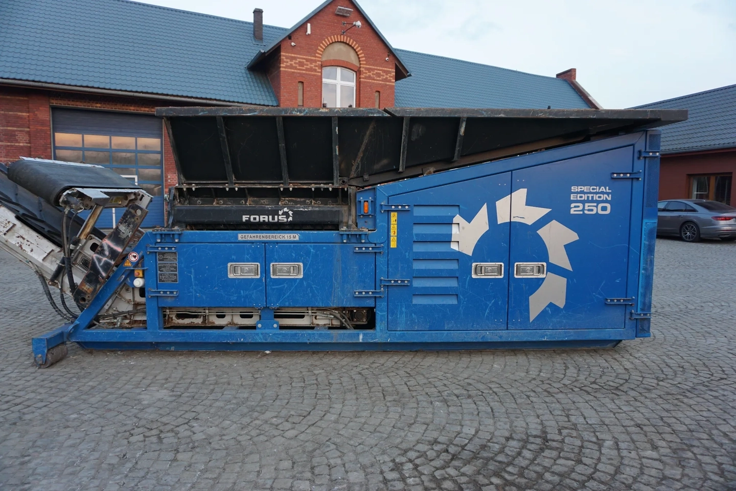 Rozdrabniacz dwuwałowy Forus SE 250 z 2017 roku to wysoce wydajne, mobilne urządzenie do wstępnego przetwarzania szerokiej gamy materiałów, sprowadzone i gotowe do pracy. Maszyna napędzana jest niezawodnym silnikiem diesla marki  CAT C7.1 186kW/253kM. Specjalistyczna konstrukcja z hydraulicznie regulowaną belką łamiącą umożliwia uzyskanie frakcji końcowej w zakresie od 150 do 500 mm. Rozdrabniacz wyposażony jest w kosz podnoszony hydraulicznie, separator magnetyczny hydraulicznie regulowany oraz system zdalnego sterowania radiowego, co znacząco podnosi komfort i bezpieczeństwo obsługi. Urządzenie jest w pełni sprawne technicznie i stanowi idealne rozwiązanie dla profesjonalnych zakładów recyklingu oraz firm zajmujących się zagospodarowaniem biomasy.