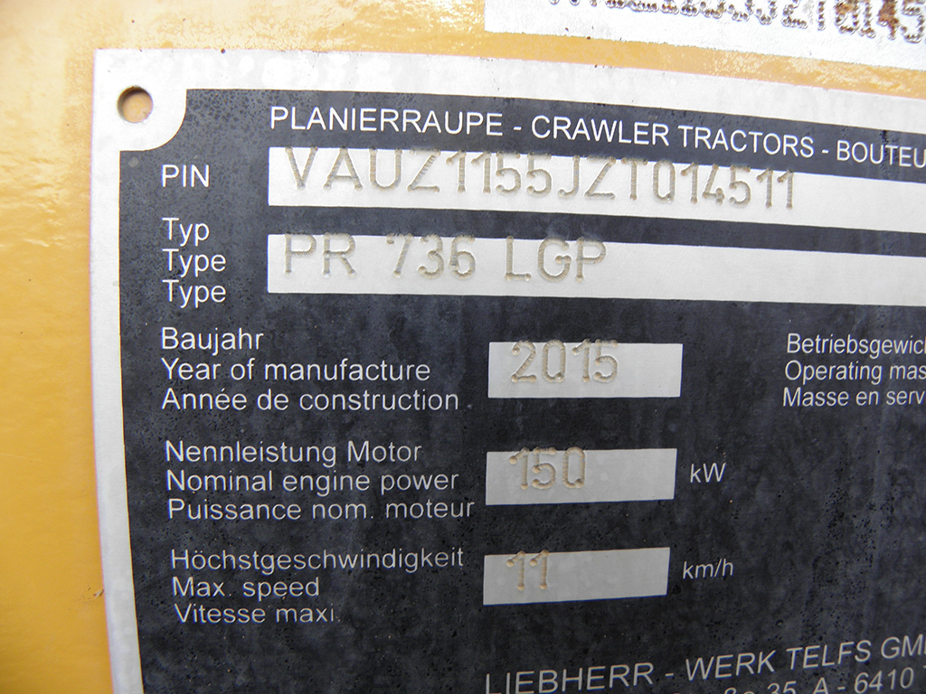 Spycharka Liebherr PR 736 LGP z 2015 roku to maszyna sprowadzona z Niemiec, charakteryzująca się niskim, udokumentowanym przebiegiem wynoszącym zaledwie 3800 motogodzin. Jednostka napędzana jest potężnym silnikiem o mocy 204 KM, co przy masie własnej 22 600 kg zapewnia doskonałą wydajność w najtrudniejszych warunkach terenowych. Maszyna wyposażona jest w lemiesz o szerokości roboczej 4 m, a jej podwozie jest w bardzo dobrym stanie (oceniane na 80% sprawności). Spycharka nie była eksploatowana w kraju, jest zachowana w świetnej kondycji technicznej i wizualnej, dzięki czemu jest w pełni gotowa do natychmiastowego podjęcia pracy na budowie.